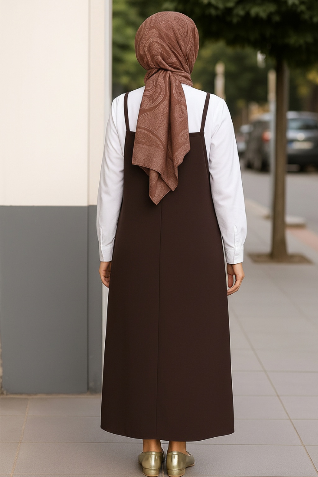 Her kadının dolabında mutlaka bulunması gereken bu kadın acı kahverengi askılı jile elbise, hem şık hem de pratik kombinler için ideal bir seçim.