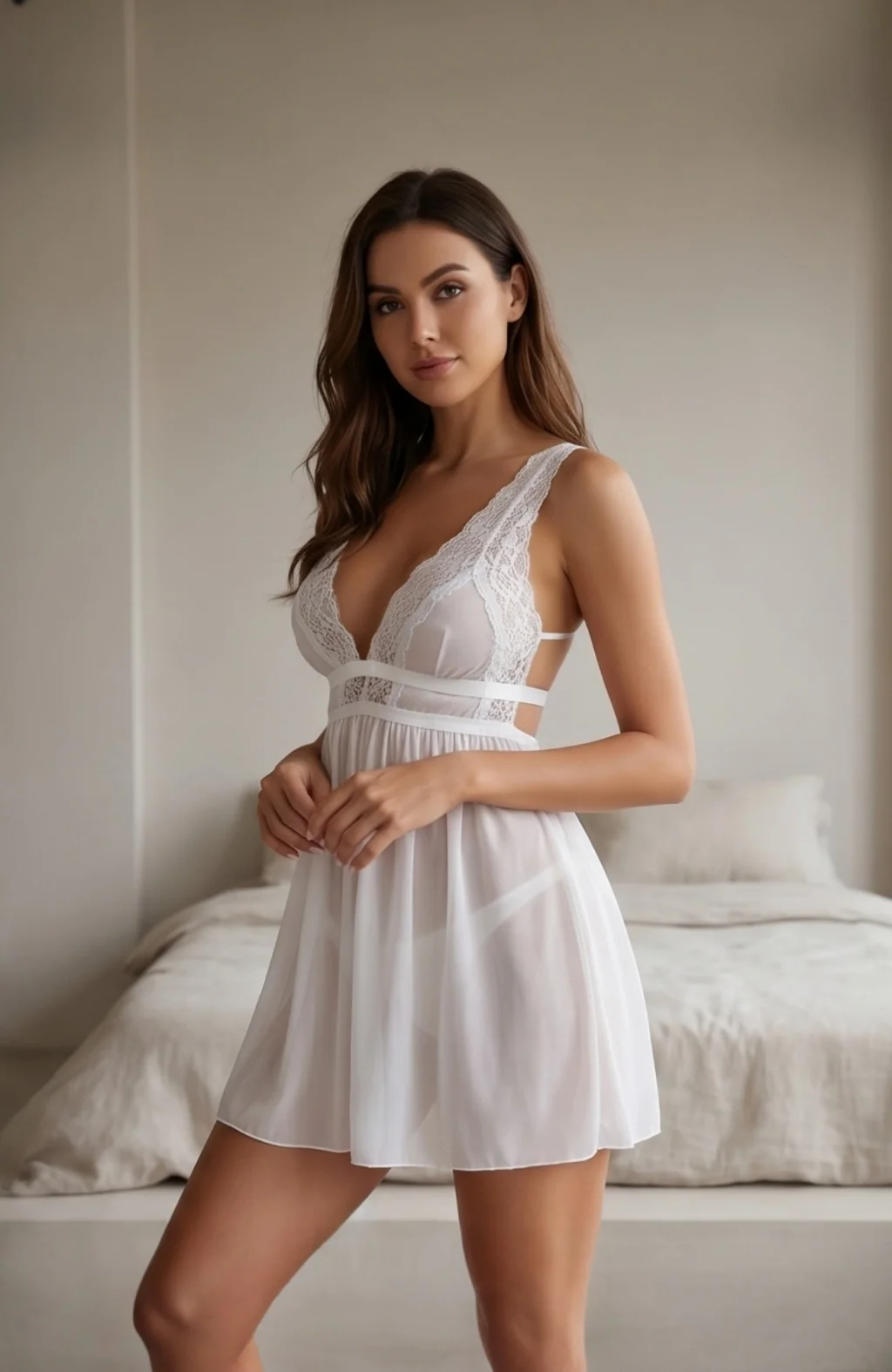 Kadın Beyaz Dantelli Sırtı Açık Gecelik – Modern ve Şık Tasarım