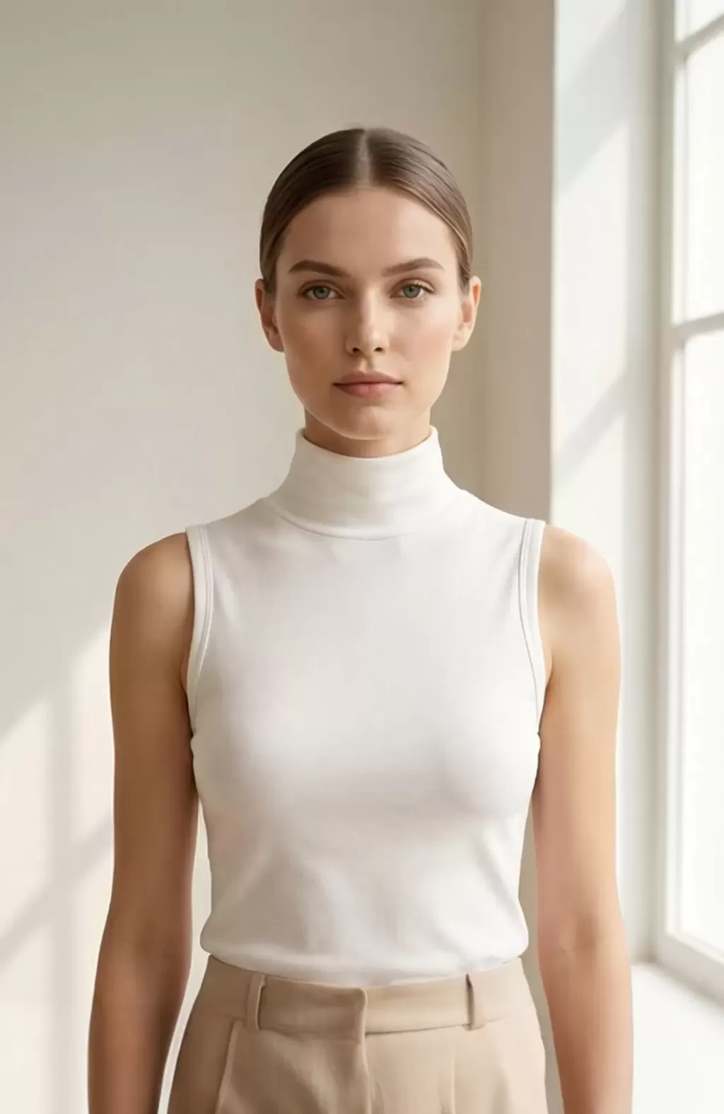 Stilinizi ferah ve zarif bir dokunuşla tamamlamak isteyenler için tasarlanmış bu kadın beyaz kolsuz basic bluz, yaz aylarının vazgeçilmez parçalarından biridir.