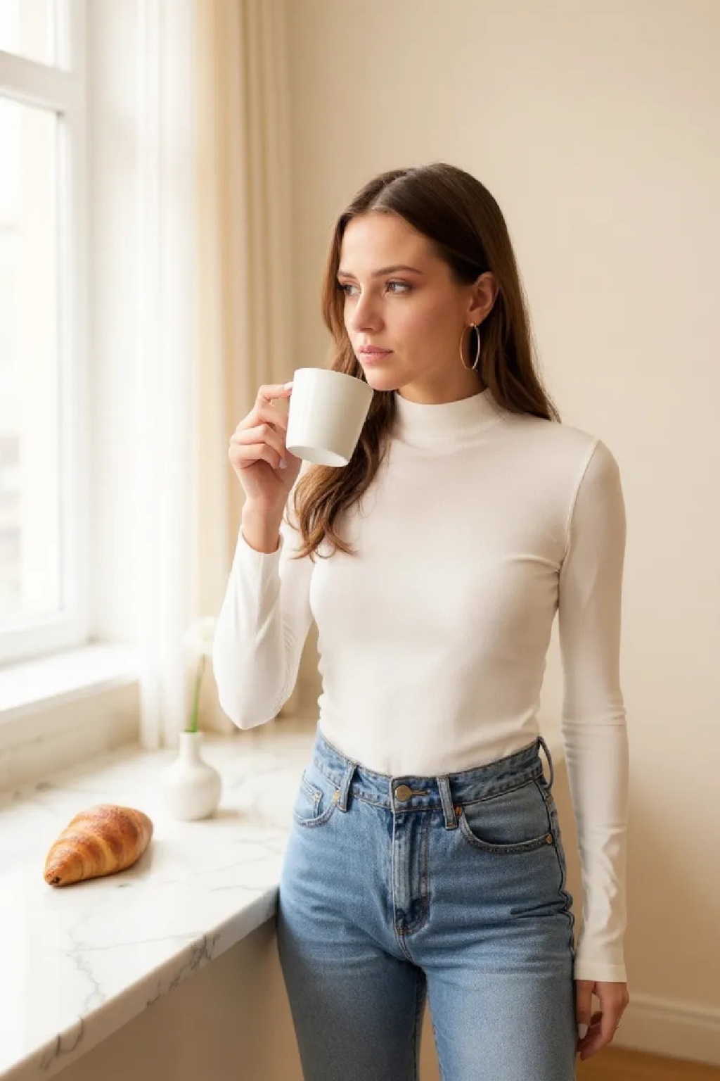 Zarafeti ve sadeliği aynı anda sunan Kadın Beyaz Parmak Detaylı Esnek Uzun Kollu Body, gardırobunuzun en kurtarıcı parçalarından biri olacak.Minimalist tasarımı ve fit kalıbıyla günlük şıklığınızı tamamlar, özel günlerde ise sofistike bir zarafet kazandırır.Esnek kumaş yapısı, gün boyu rahat hareket etmenizi sağlarken vücudu sararak feminen bir görünüm sunar. Parmak detaylı uzun kollu body, beyaz rengin saf ve zamansız havasıyla birleşerek çok yönlü kullanım avantajı sağlar. Dört mevsim rahatlıkla kullanılabilir.Öne Çıkan ÖzelliklerRenk: Beyaz (zamansız ve minimalist)Parmak detaylı uzun kollu tasarımEsnek, yumuşak kumaşFit kalıp, vücuda oturan şık kesimGünlük, ofis ve özel davetlerde kullanım için idealBasic body kategorisinin en çok tercih edilen parçasıKombin ÖnerileriGünlük Şıklık: Jean ve sneaker ile temiz ve spor bir görünümGece Kombini: Siyah etek ve topuklularla klasik beyaz-siyah şıklığıOfis Stili: Takım elbise altına giyilerek profesyonel bir duruşSokak Modası: Salaş pantolon veya şortla casual bir havaYıkama & Bakım Talimatı30°C’de hassas yıkama önerilirÇamaşır suyu kullanılmamalıdırDüşük ısıda tersten ütülenmelidirSererek kurutma tavsiye edilirBu kadın beyaz uzun kollu body, her stile uyum sağlayan kurtarıcı bir parça olacak. Hem sade kombinlerde hem de şık davetlerde zarafetiyle sizi öne çıkarır.]]>