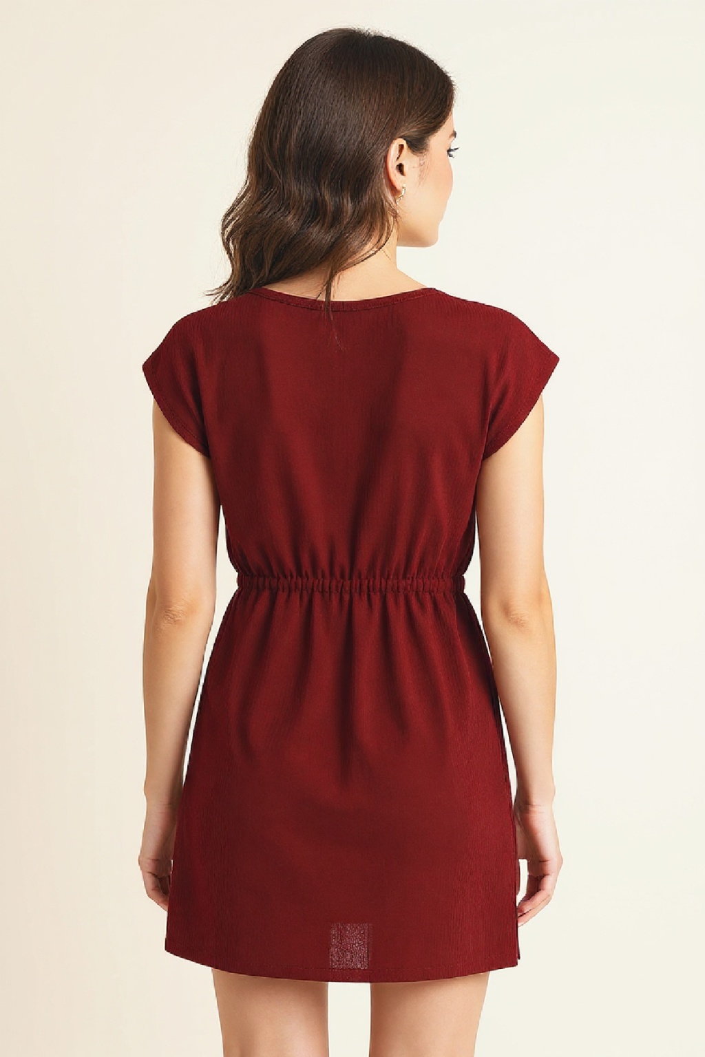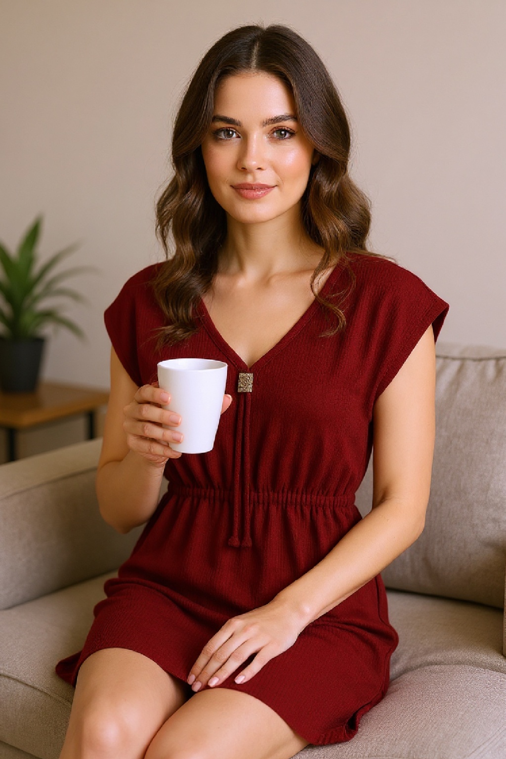 Kadın Bordo Yanları Yırtmaçlı Tokalı V Yaka Mini Plaj Elbisesi, sezonun en çarpıcı tonlarından biriyle karşınızda.V yaka kesimiyle zarif bir görünüm sunarken, beldeki tokasıyla vücut hatlarını zarifçe vurgular.Yanlarında yer alan yırtmaç detayları sayesinde yürüyüşlerde rahatlık sağlar ve feminen bir duruş kazandırır.Dokulu yumuşak kumaşı hem nefes alır hem de gün boyu konfor sağlar.Güneşli günlerde sahil yürüyüşlerinden yaz akşamı davetlerine kadar her ortamda tarzınızı yansıtmak için idealdir.Bordo rengin sofistike havası ten renginizi ön plana çıkarır, sade aksesuarlarla birleştiğinde zarif bir görünüm oluşturur.Öne çıkan özellikler:Şık V yaka ve tokalı bel detayıYan yırtmaçlar ile konforlu kullanımHafif, nefes alabilen kumaşYazlık, tatil ve günlük kombinler için uygunDökümlü mini boy modern kesim]]>