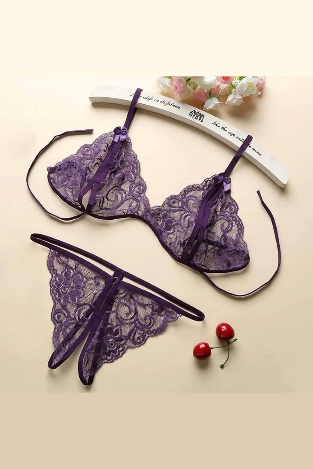 Kadın Mor Dantelli Sütyen Külot Takımı – Modern, Konforlu ve Günlük Kombinlere Uygun