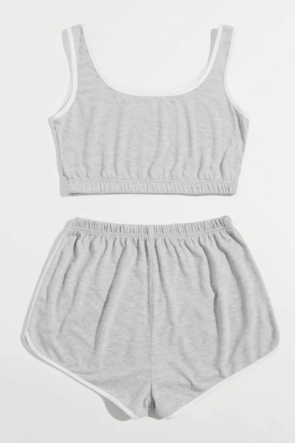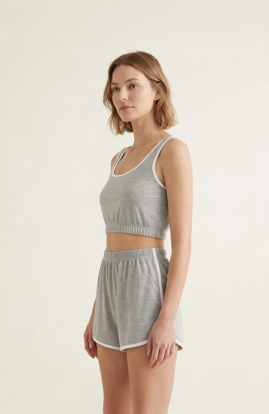Kadın Gri Askılı Crop Top ve Şortlu Gecelik Takım