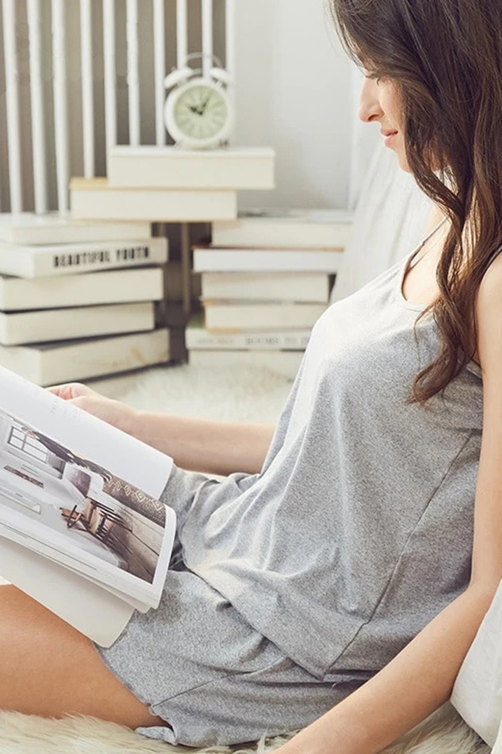Kadın Gri Şortlu Penye Gecelik Takımı – Modern, Konforlu ve Günlük Kombinlere Uygun