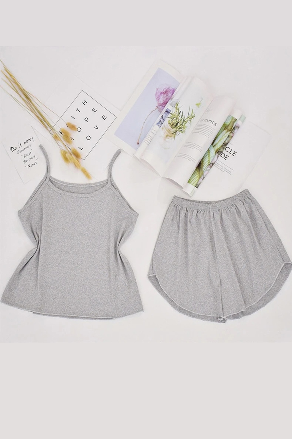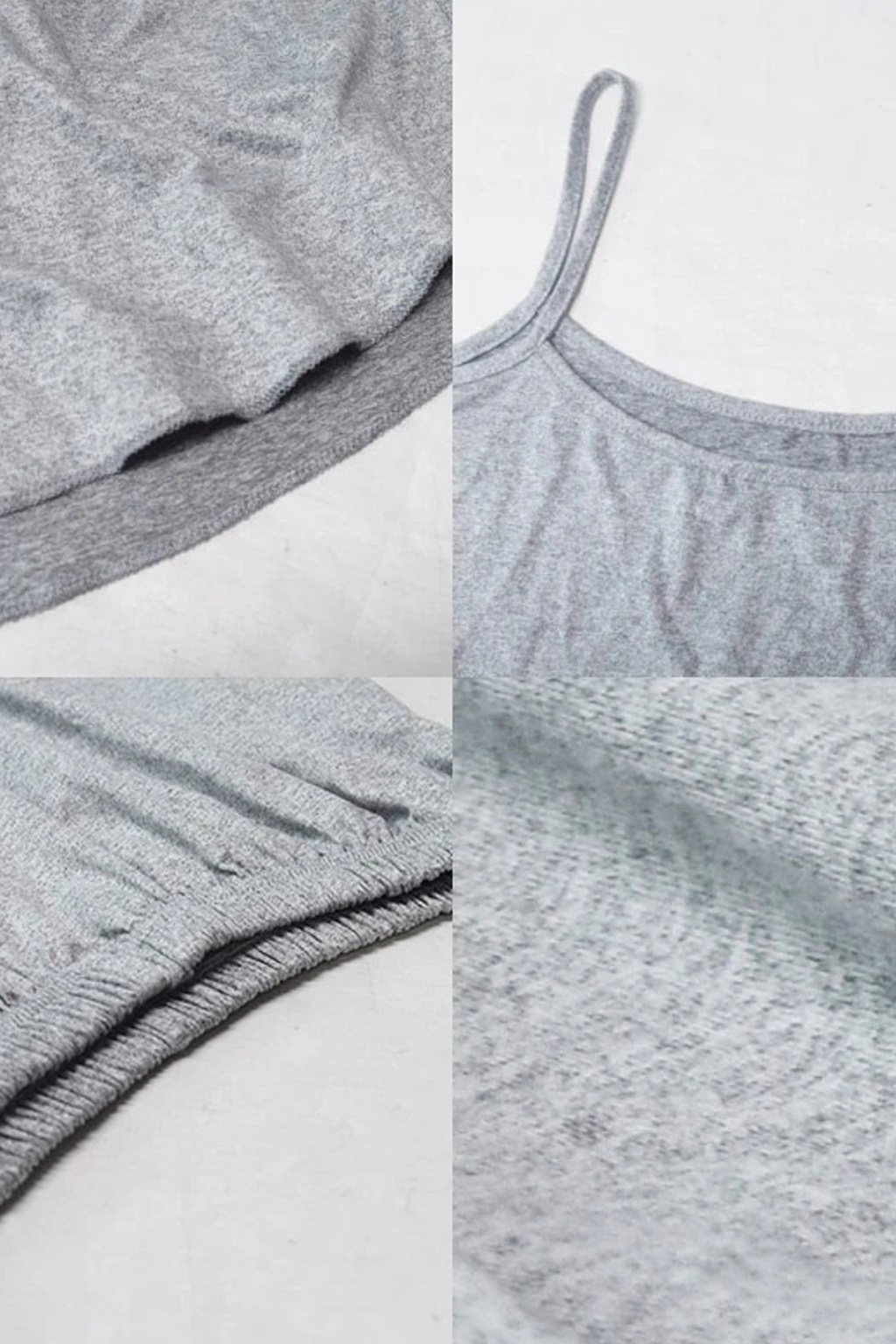 Kadın Gri Askılı Crop Top ve Şortlu Gecelik Takım