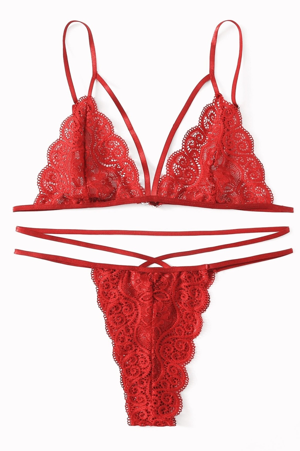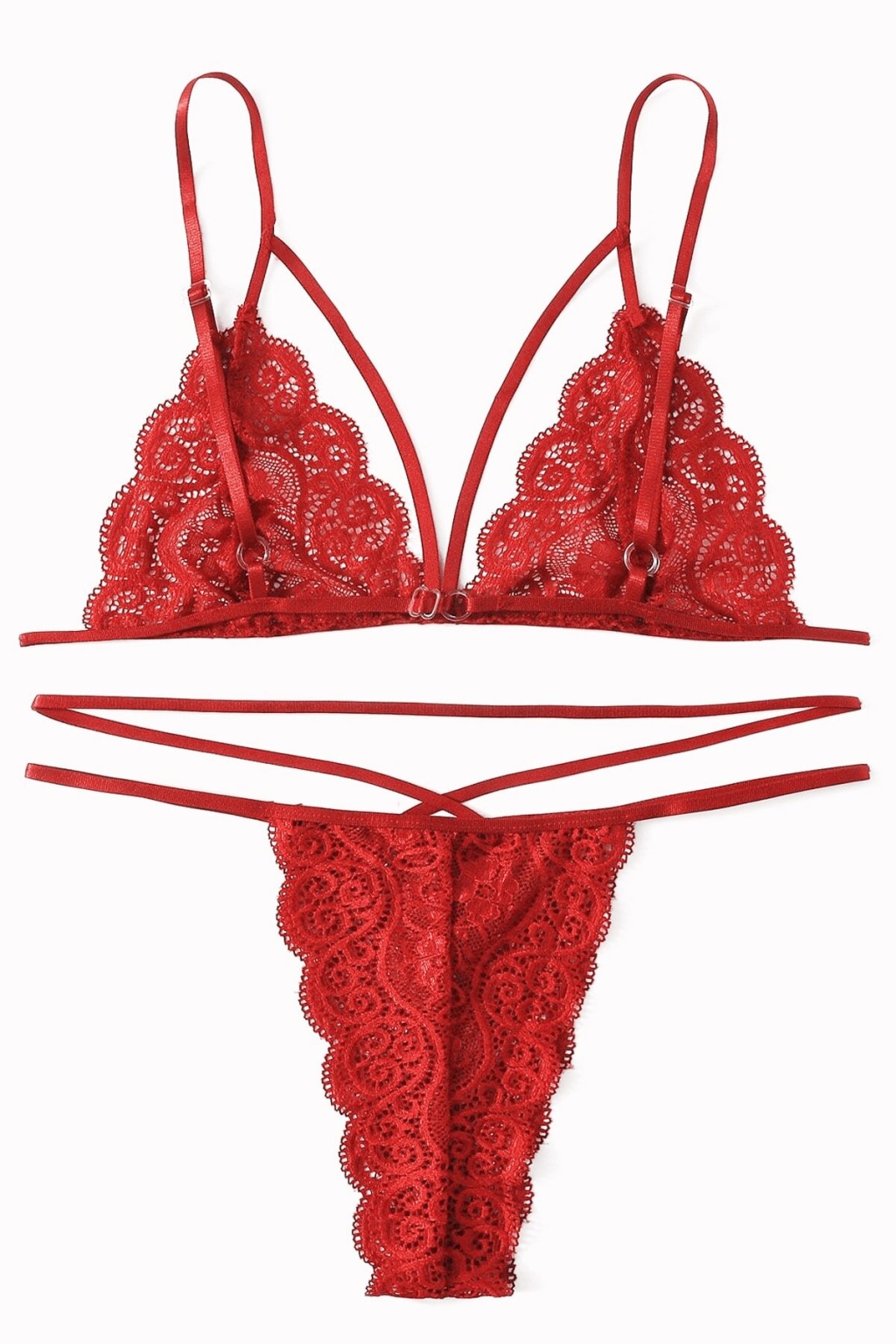 Kırmızı Çapraz Ip Detaylı Şık Sütyen Külot Takım