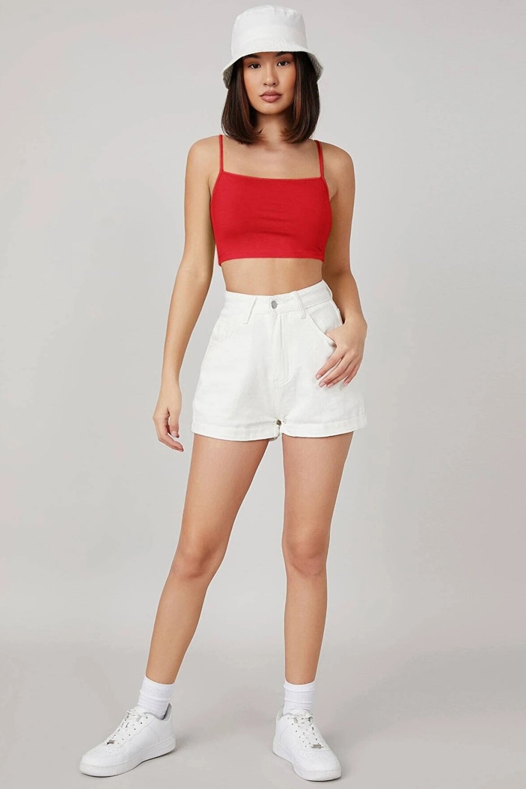 Kadın Kırmızı Ip Askılı Crop Top Büstiyer – Modern ve Şık Tasarım
