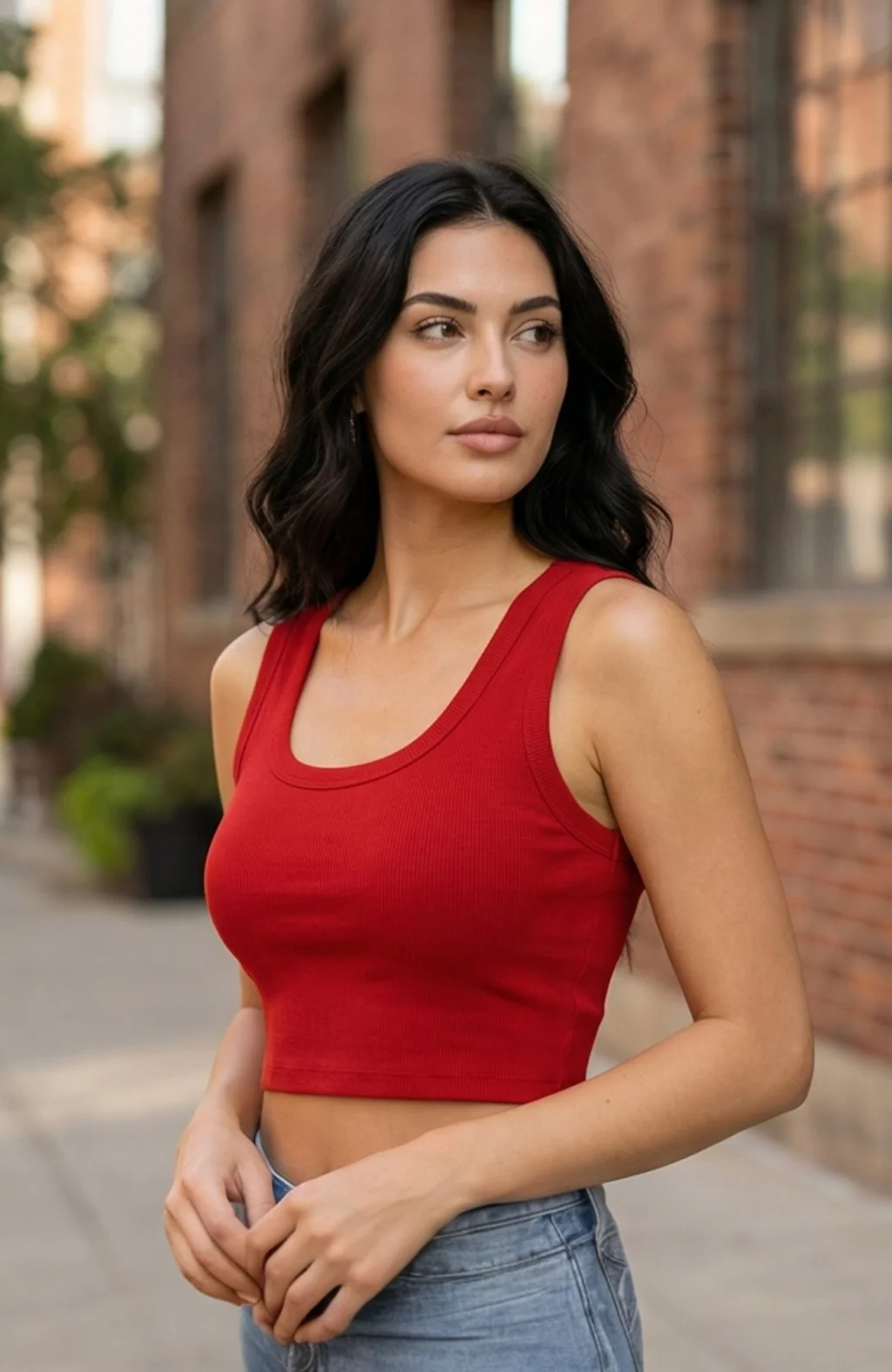 Kadın Kırmızı Derin Göğüs Dekolteli Şık Crop Top Bluz – Şık, Rahat ve Kolay Kombinlenebilir
