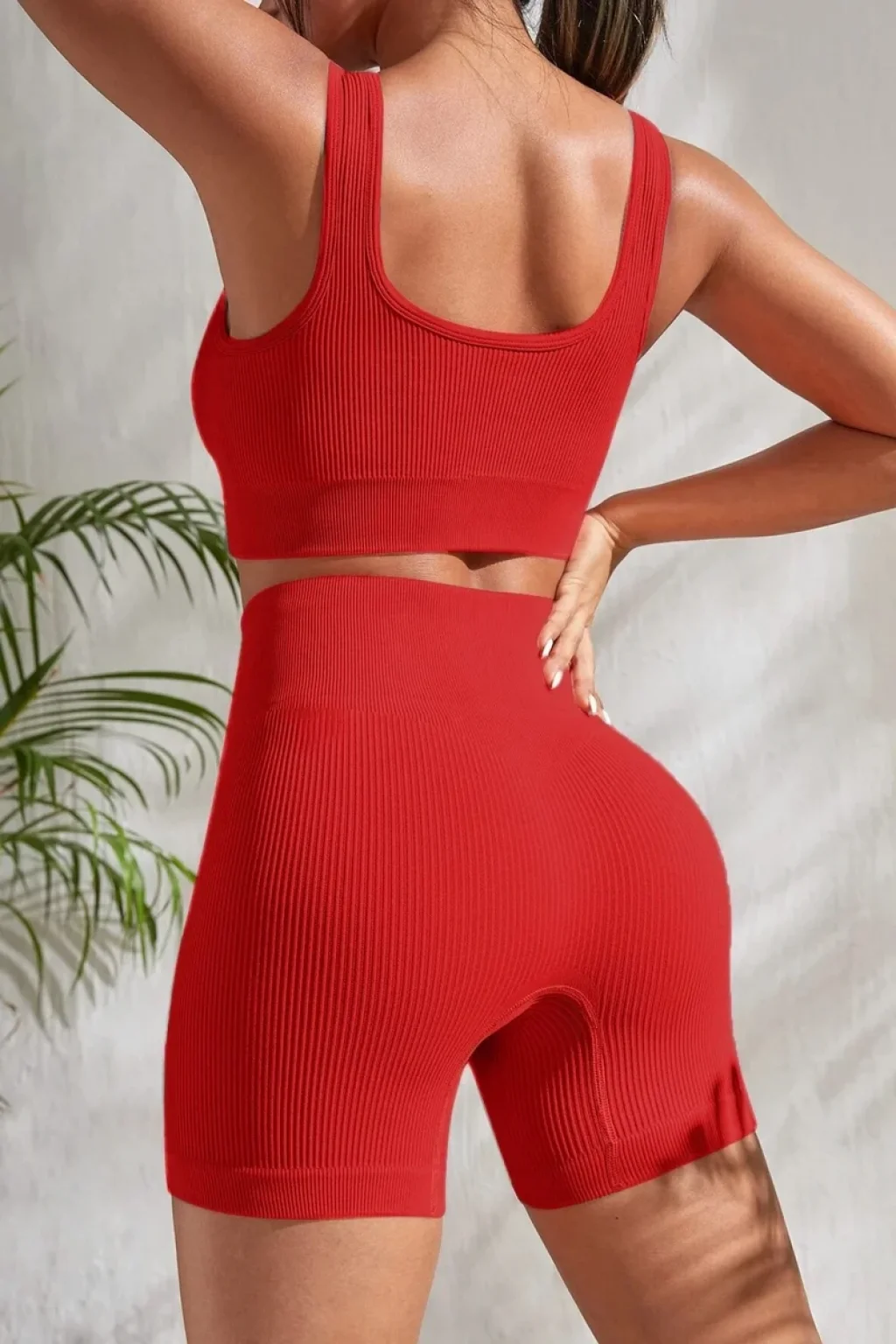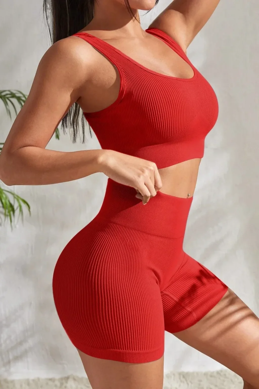 Kadın Kırmızı Şortlu Yüksek Bel Gecelik Takımı