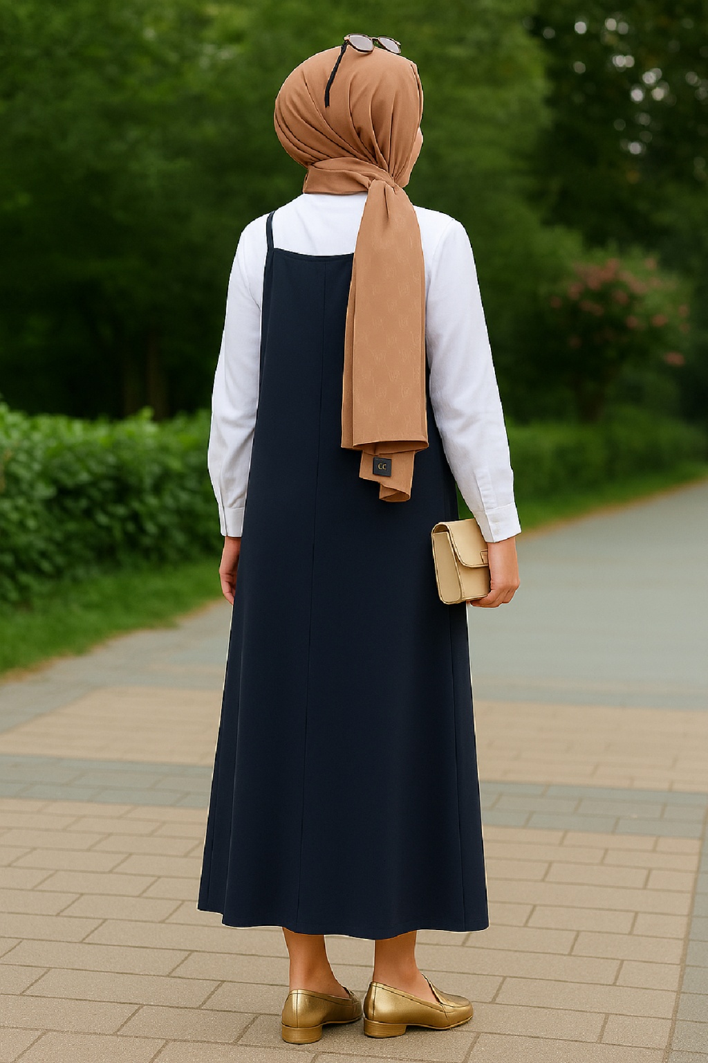 Şıklığı ve rahatlığı bir arada sunan kadın lacivert basic ayarlanabilir askılı jile elbise, gardırobunuzun en kullanışlı parçalarından biri olacak. Ayarlanabilir askıları sayesinde kişisel ölçülerinize uygun şekilde kullanabilir, gün boyu konforlu bir şıklık yakalayabilirsiniz.Minimalist tasarımıyla hem günlük kombinlerde hem de özel davetlerde tercih edilebilen bu jile elbise, lacivert rengin asil ve zamansız havasıyla dikkat çekiyor. Yaz aylarında tek başına ferah bir kombin oluştururken, sonbahar ve kış aylarında gömlek, bluz veya kazaklarla katmanlı bir stil oluşturmanıza imkan tanır.Öne Çıkan Özellikler:Kadın lacivert jile elbiseBasic minimalist tasarımAyarlanabilir askılı modelRahat kalıp ve dökümlü formGünlük, ofis ve özel gün kombinlerine uygunDört mevsim kullanılabilir şık parçaKullanım Alanları:Günlük şıklık için tişört veya gömlek ile sneaker kombini yapılabilir.İş ortamında bluz ve topuklu ayakkabı ile zarif bir görünüm elde edilir.Özel günlerde aksesuarlarla tamamlandığında modern bir davet elbisesine dönüşür.Neden Tercih Etmelisiniz?Lacivert rengin zamansız ve şık duruşuAyarlanabilir askıları ile pratik kullanımMinimalist tasarımıyla farklı stillere uyum sağlamasıGün boyu rahat kalıbıyla konfor sunmasıHer kadının dolabında mutlaka bulunması gereken bu kadın lacivert basic ayarlanabilir askılı jile elbise, hem şık hem de pratik kombinler için ideal bir seçim. Gardırobunuzun en kurtarıcı parçalarından biri olacak!]]>