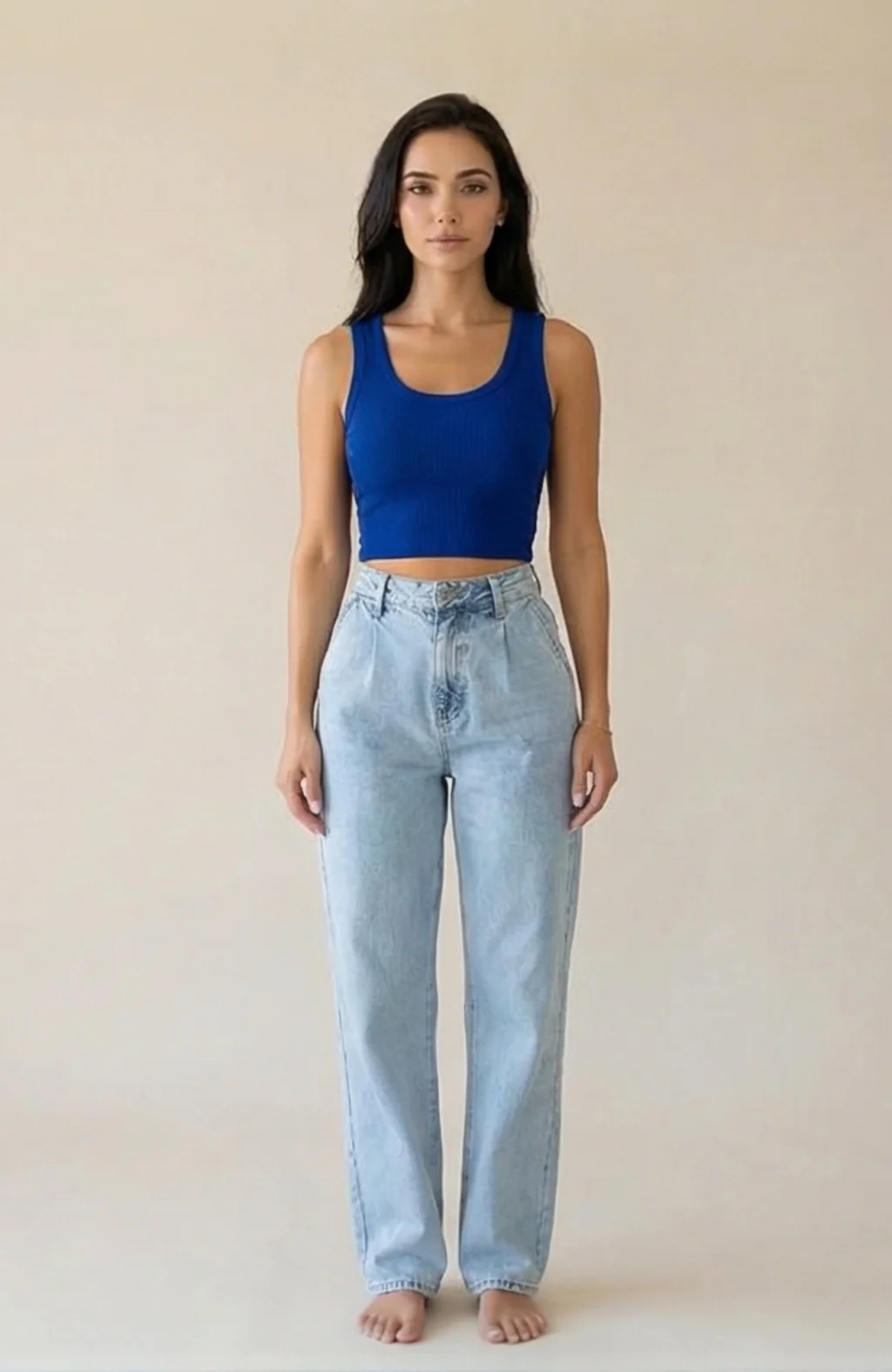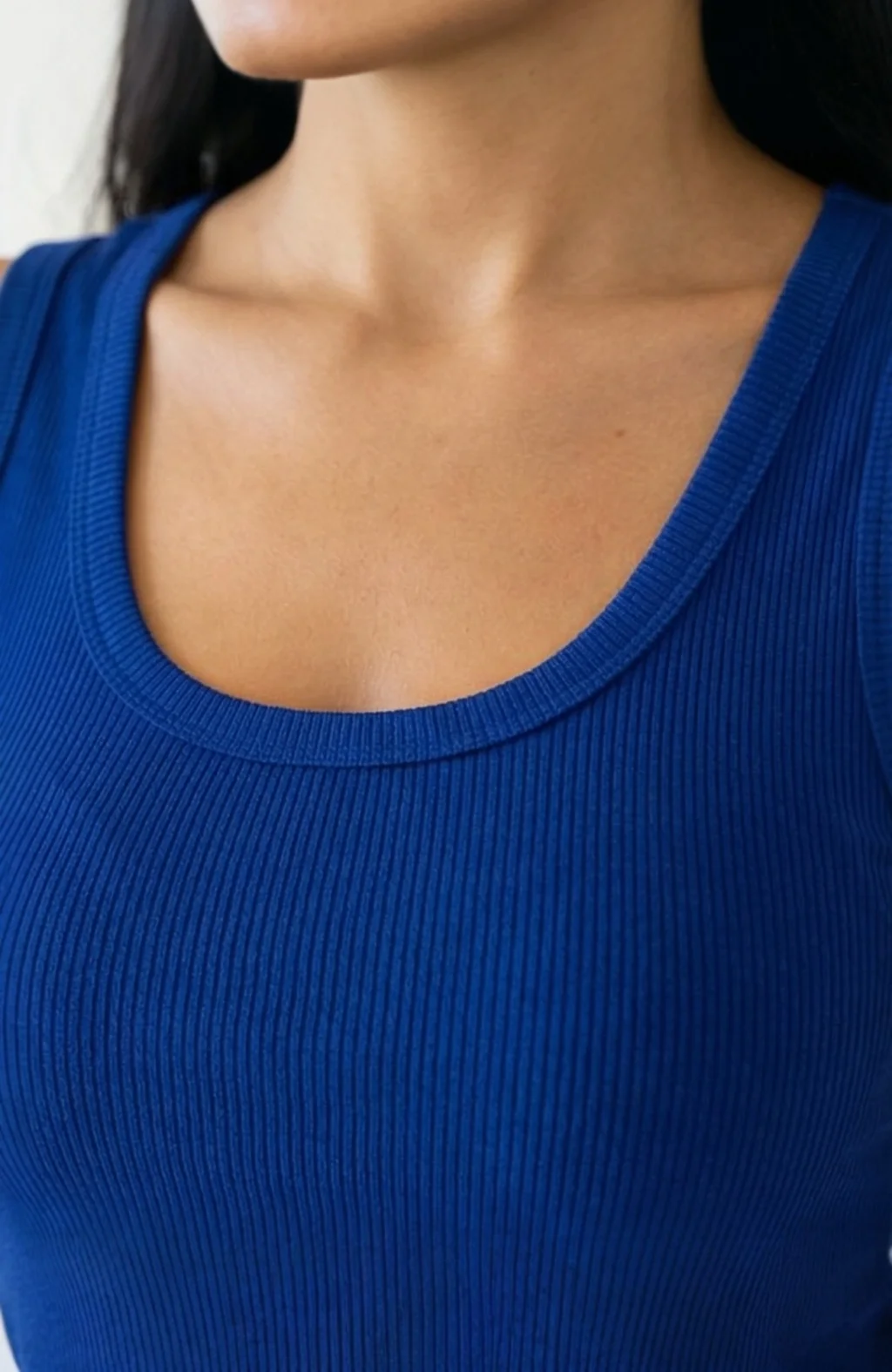 Kadın Lacivert Kare Yaka Crop Top Bluz – Şık, Rahat ve Kolay Kombinlenebilir