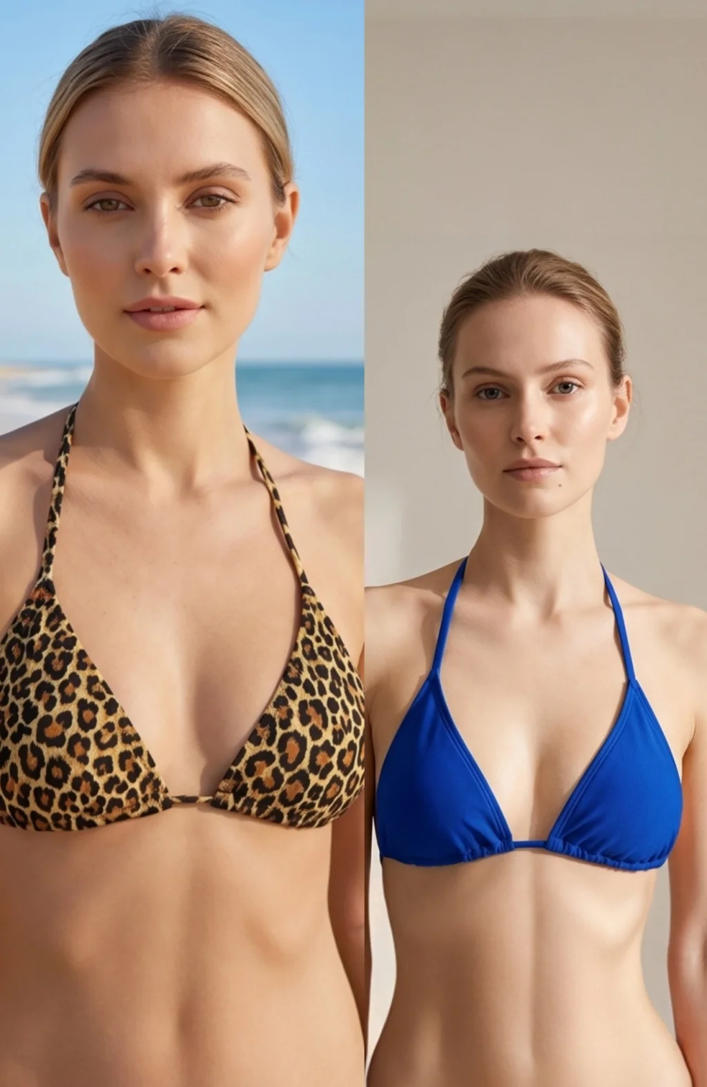 Leopar deseniyle dikkat çeken bu bikini üstü, plaj modasına şıklık katıyor.