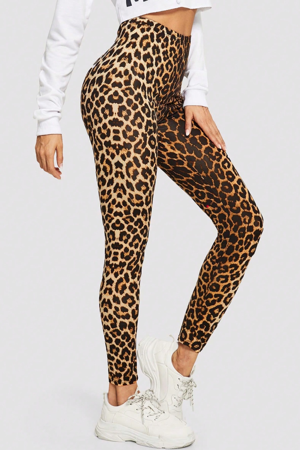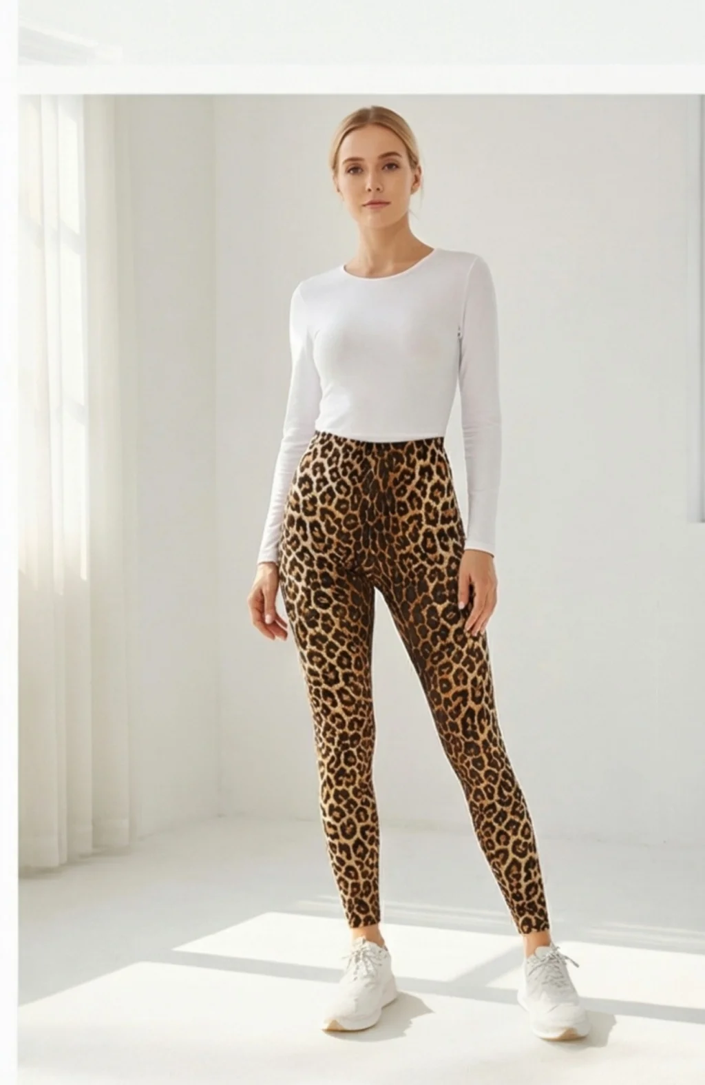 Leopar deseniyle dikkat çeken yüksek bel dar tayt, spor şıklığınızı tamamlar.