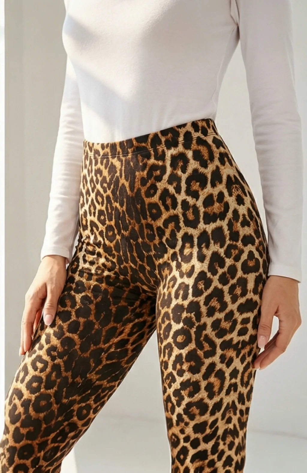 Kadın Leopar Desenli Yüksek Bel Dar Kesim Esnek Tayt – Modern ve Şık Tasarım