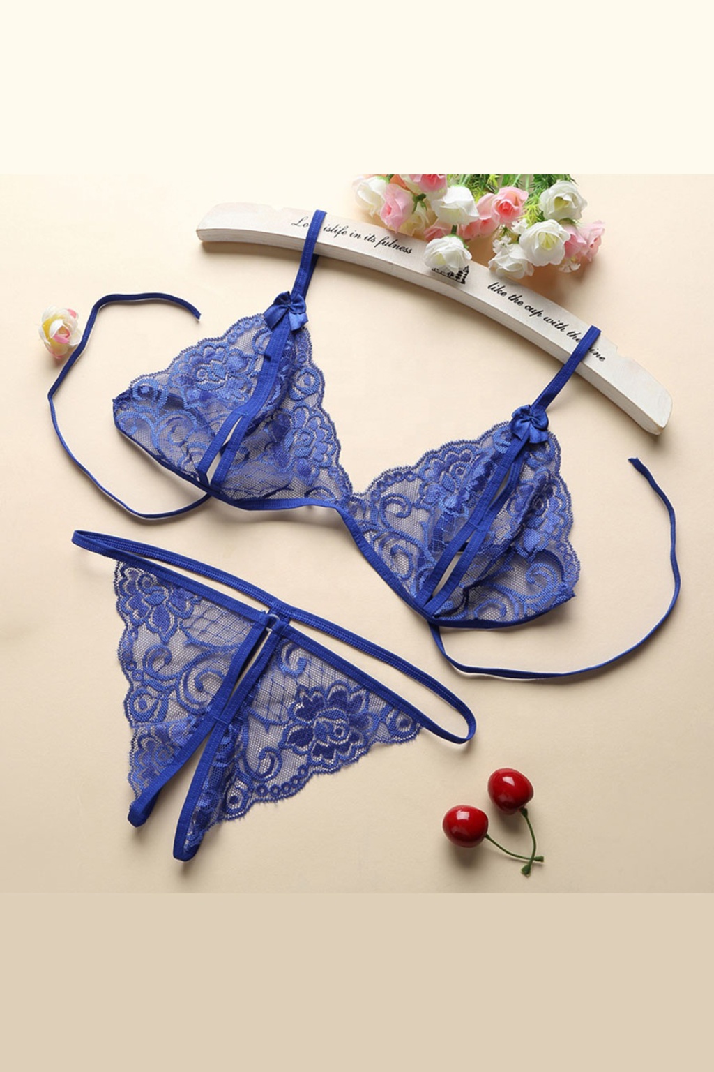 Mavi Çapraz Ip Detaylı Şık Sütyen Külot Takım