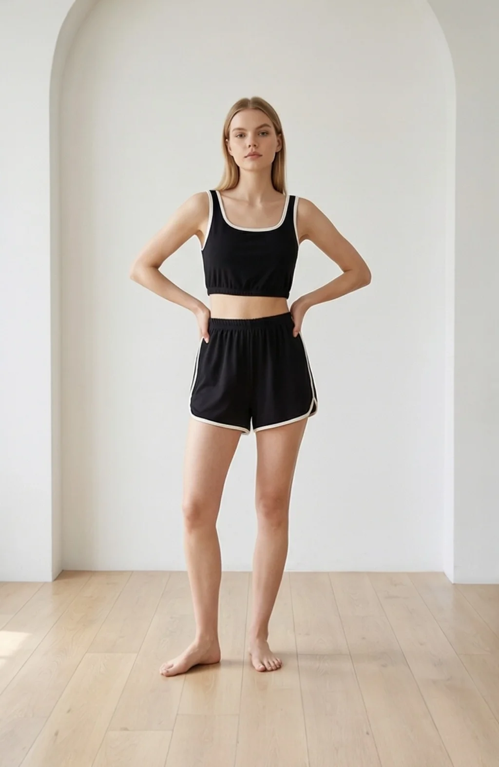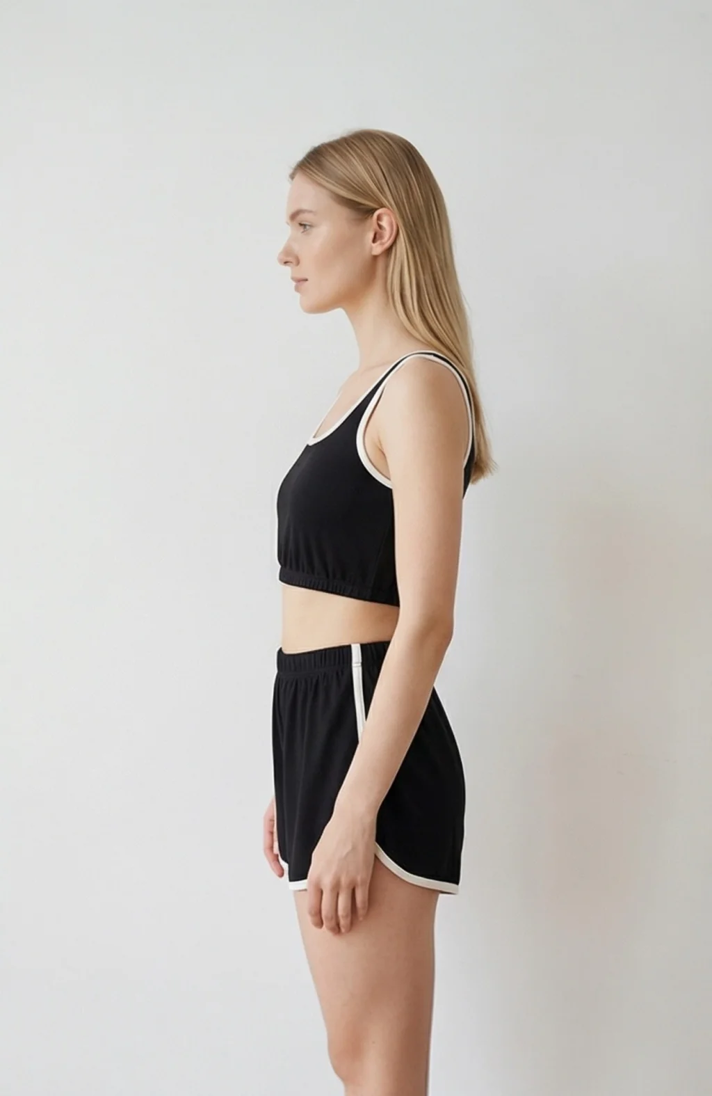Kadın Siyah Şortlu Kaşkorse Gecelik Takım – Modern, Konforlu ve Günlük Kombinlere Uygun