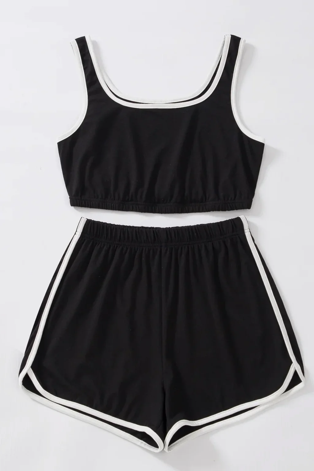 Kadın Siyah Askılı Crop Top ve Şortlu Gecelik Takım