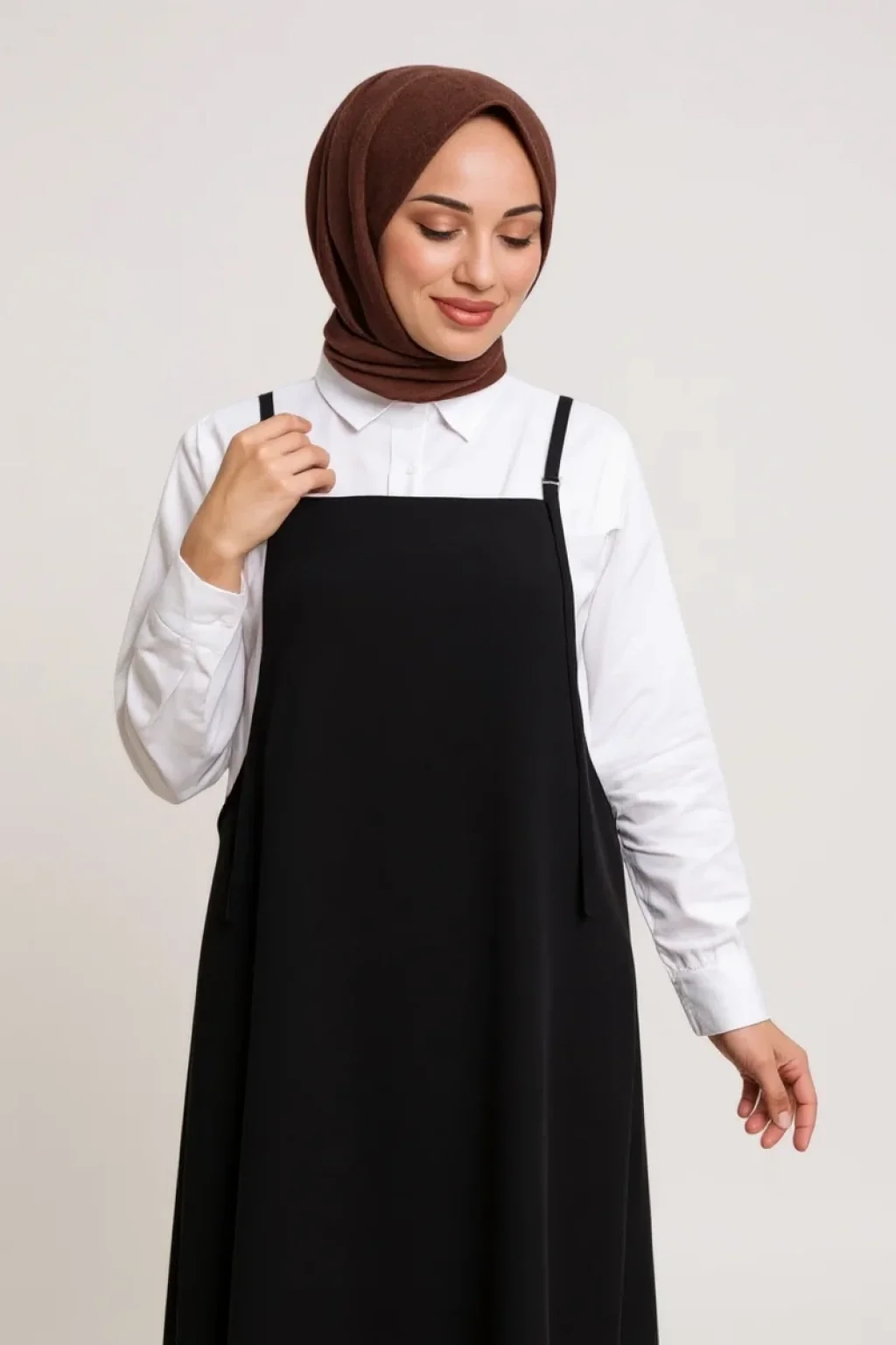 Askılı yapısı sayesinde gömlek, bluz, tişört veya boğazlı kazaklarla rahatlıkla kullanılabilir.