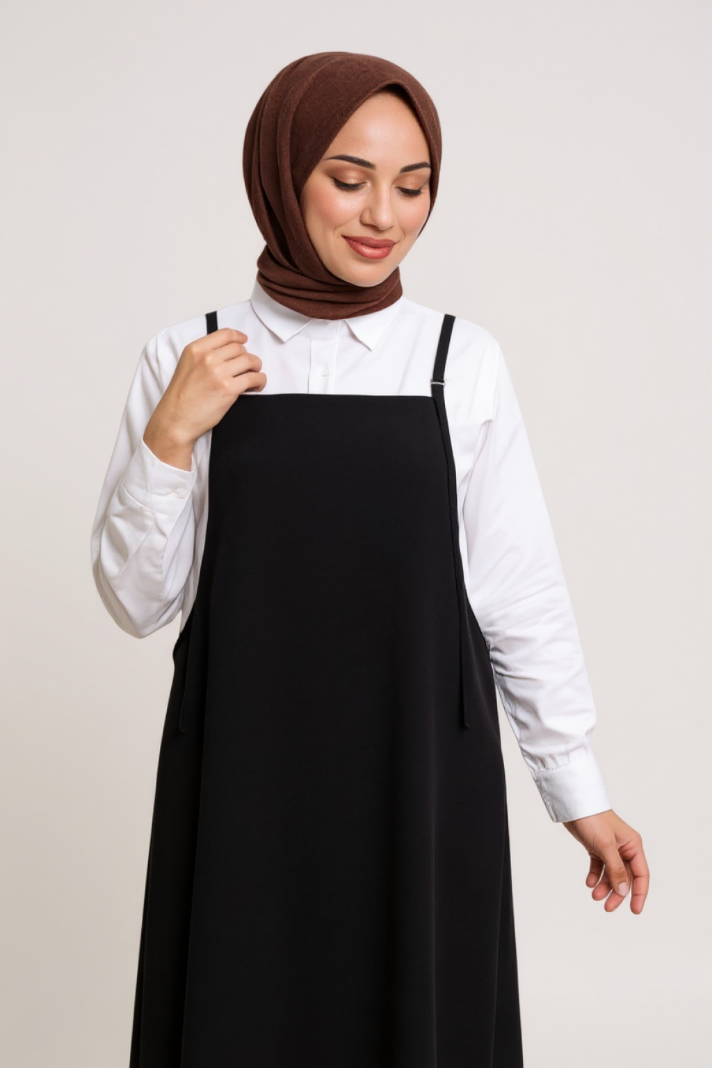 Her kadının dolabında mutlaka bulunması gereken bu kadın siyah askılı jile elbise, hem şık hem de pratik kombinler için ideal bir seçim.