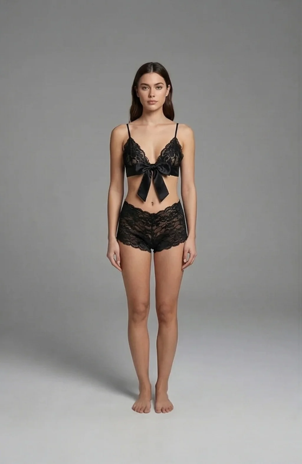 Kadın Siyah Dantelli & Kurdelalı Sütyen Külot Takımı