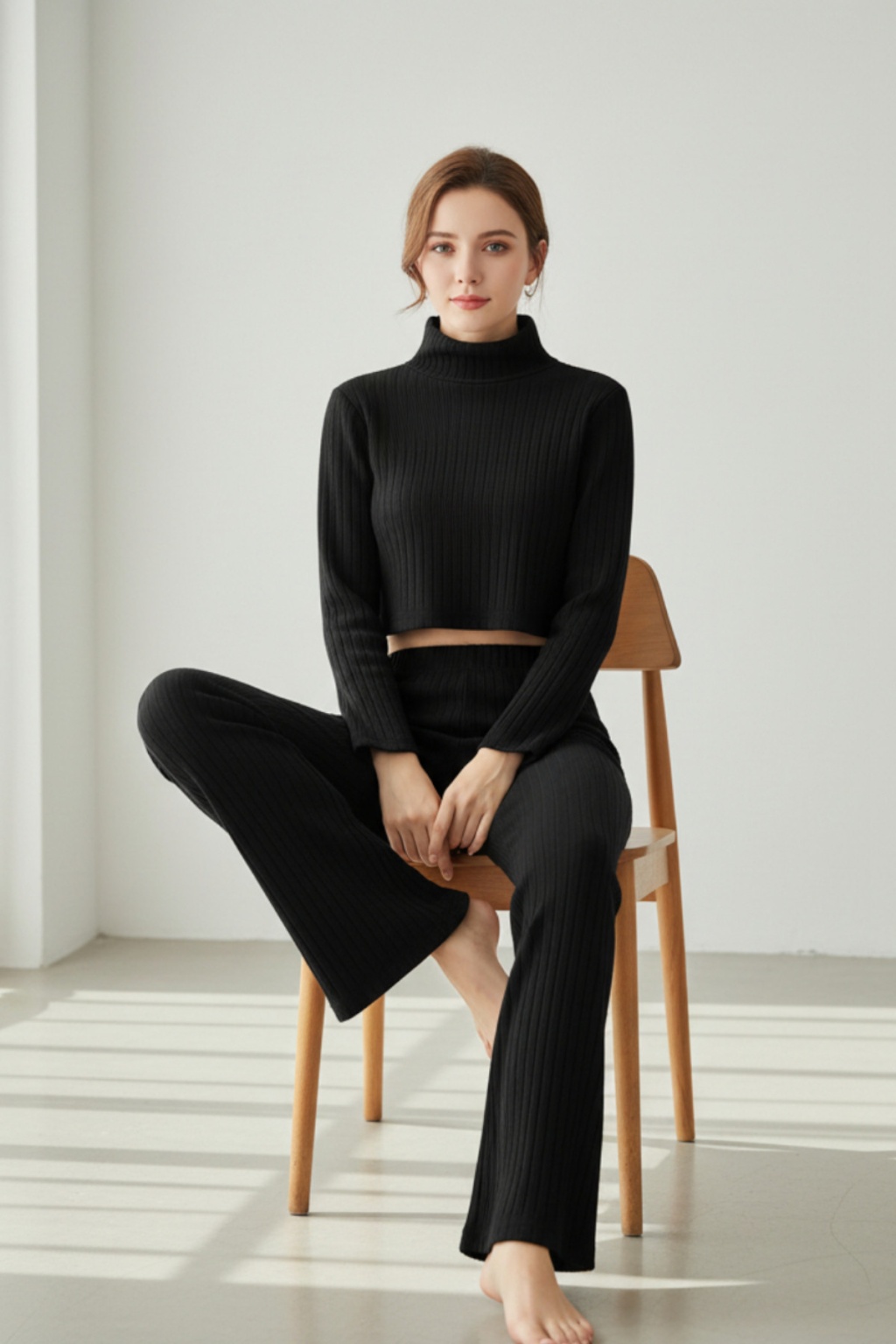 Zamansız siyah rengi ve sade tasarımıyla öne çıkan kadın fitilli eşofman takımı, hem şık hem rahat bir kullanım sunar. Uzun kollu crop üst, modern bir siluet oluştururken pantolonun düz paça kesimi vücuda dengeli bir görünüm kazandırır.Fitilli dokusu sayesinde kumaş tok durur, formunu korur ve gün boyu konfor sağlar. Günlük kombinlerde, ev giyiminde veya casual dış giyim olarak rahatlıkla tercih edilebilir. Abartısız tasarımı sayesinde farklı ayakkabı ve dış giyim parçalarıyla kolayca kombinlenir.Minimal, net ve trend bir görünüm arayanlar için ideal bir settir.Öne Çıkan ÖzelliklerFitilli, esnek kumaşUzun kollu crop üstRahat paça pantolonŞık ve sade tasarımGünlük kullanıma uygunBeden & KalıpStandart kalıpVücuda oturan ama sıkmayan yapıBakım30°C hassas yıkamaDüşük ısıda ütülemesiyah eşofman takımı, fitilli eşofman takımı, crop eşofman, kadın siyah eşofman, günlük eşofman takımı]]>