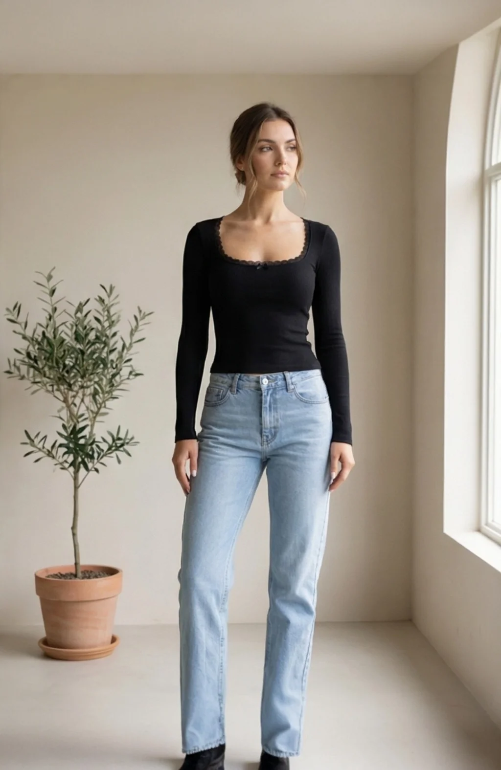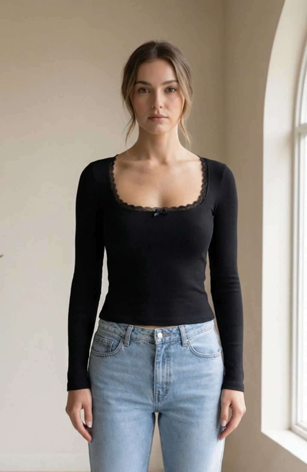 Şık ve zarif tasarımı ile öne çıkan siyah kare yaka bluz.