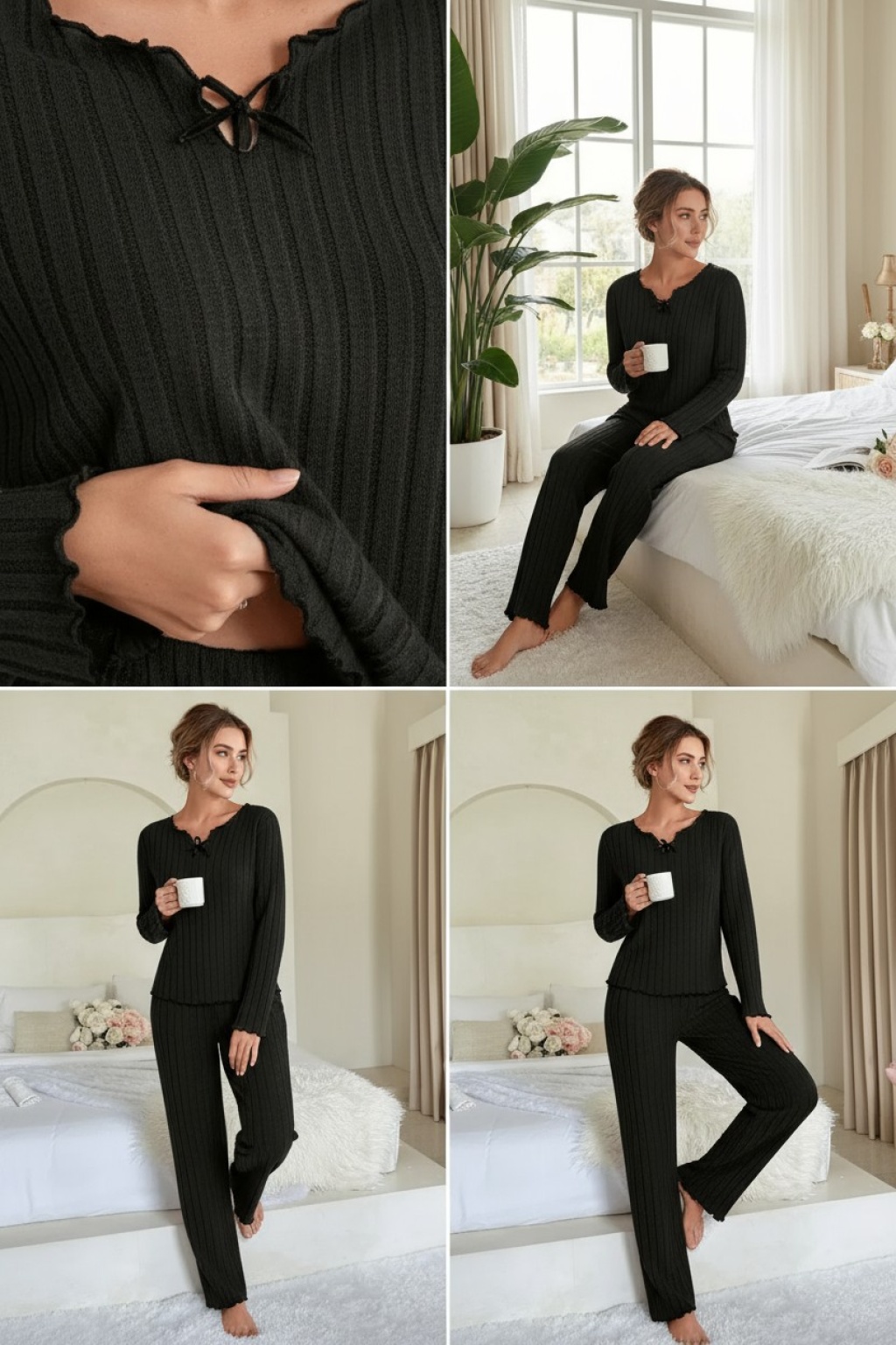 Kadın pijama takımı – iki parçalı, uzun kollu tasarım