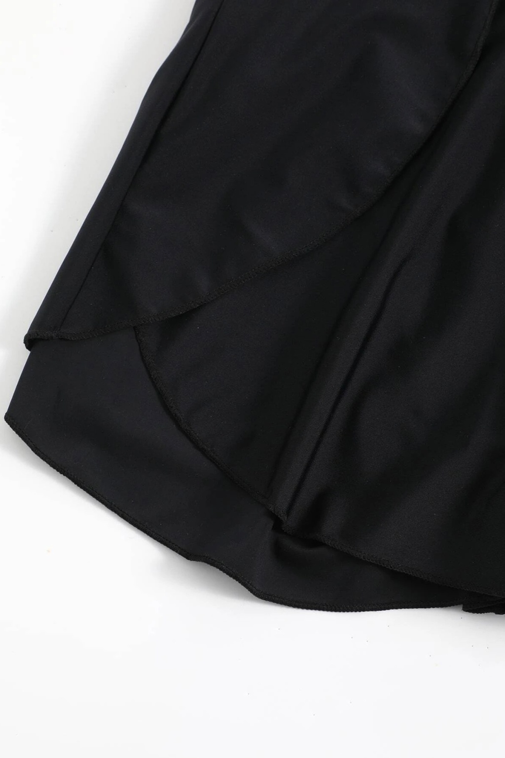 Kadın Siyah Yırtmaçlı Etek Görünümlü Şık Deniz Şortu – Modern ve Şık Tasarım