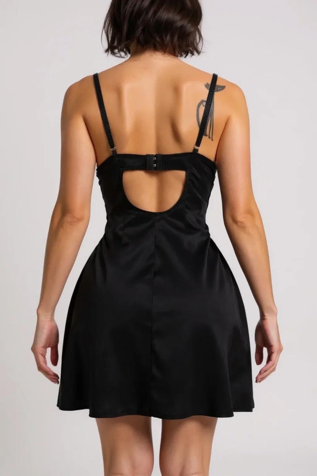 Kadın Siyah Dantelli Sırtı Açık Gecelik – Modern ve Şık Tasarım