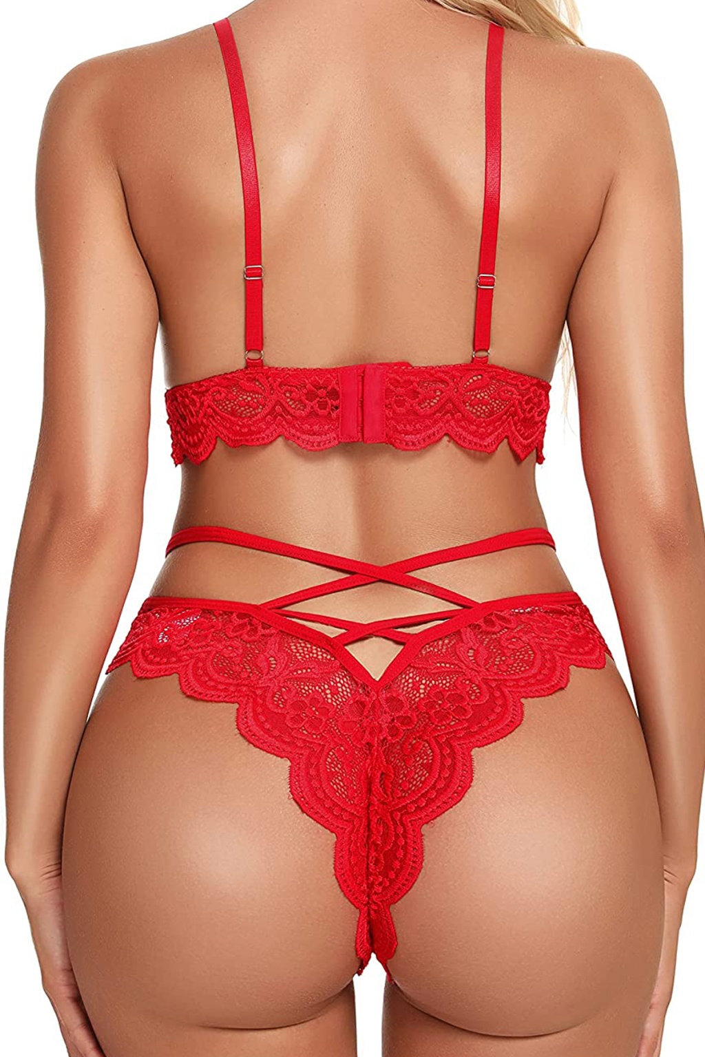 Kırmızı Çapraz Ip Detaylı Şık Sütyen Külot Takım